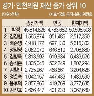 인천·경기 국회의원 61명 재산 증가…박정 47억 최다